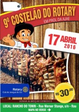 No dia 17 de Abril estaremos promovendo o 9.º Costelão do Rotary Club de Jaraguá do Sul no Rancho do Tonin, no Bairro Rau, a partir das 11:30 horas.