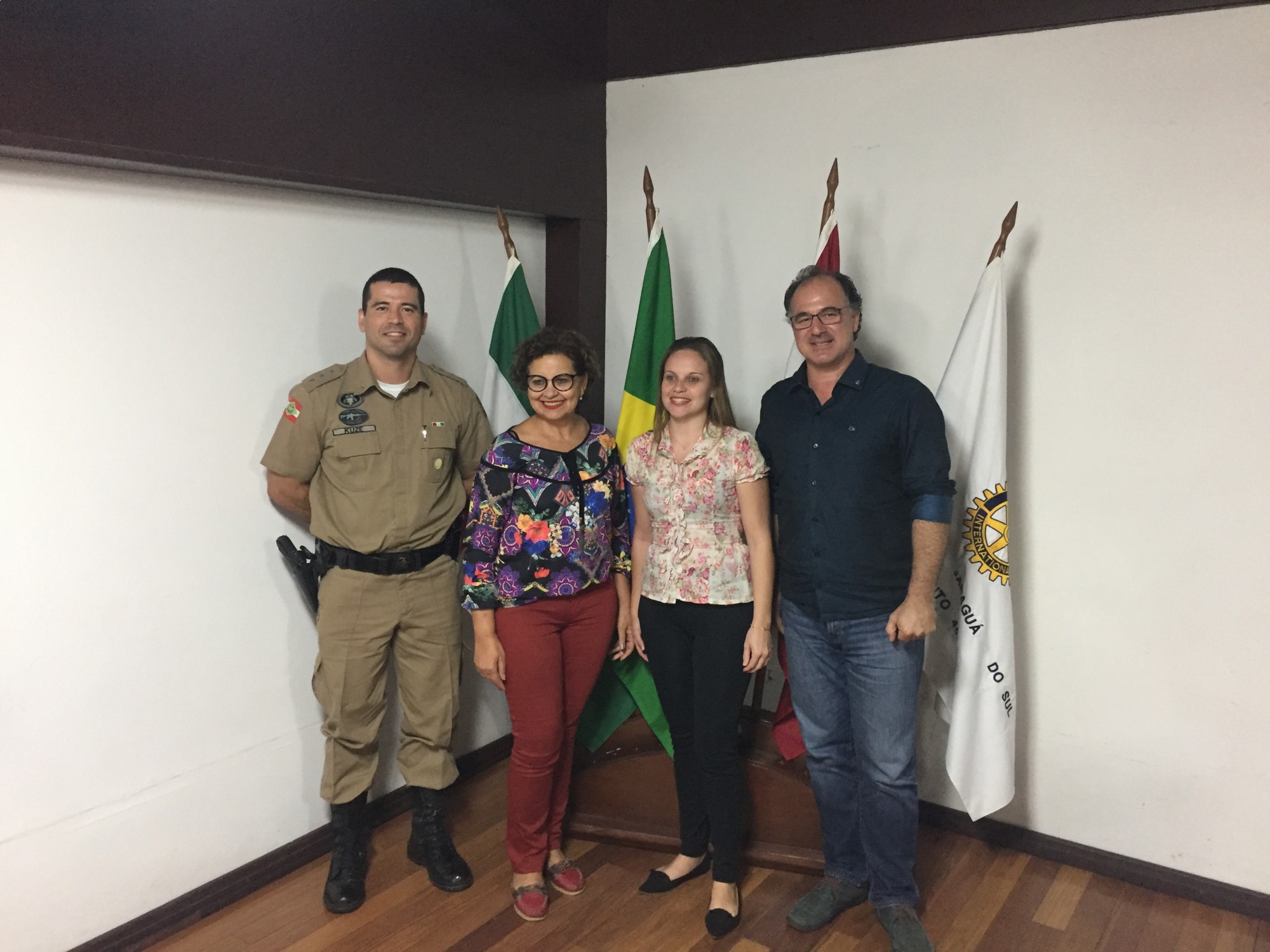 Na terça feira, 08/05, recebemos em nossa reunião aberta o Major João Carlos Benassi Borges Kuze, do 14º Batalhão da Policia Militar de Santa Catarina, e Maria da Silva Reis, Presidente da Sociedade sem Câncer em Jaraguá do Sul, que falaram sobre as atividades e necessidades das suas entidades. Estas são as entidades que serão beneficiadas com os recursos que será arrecadado no 11º Costelão do Rotary que será realizado no dia 27/05.