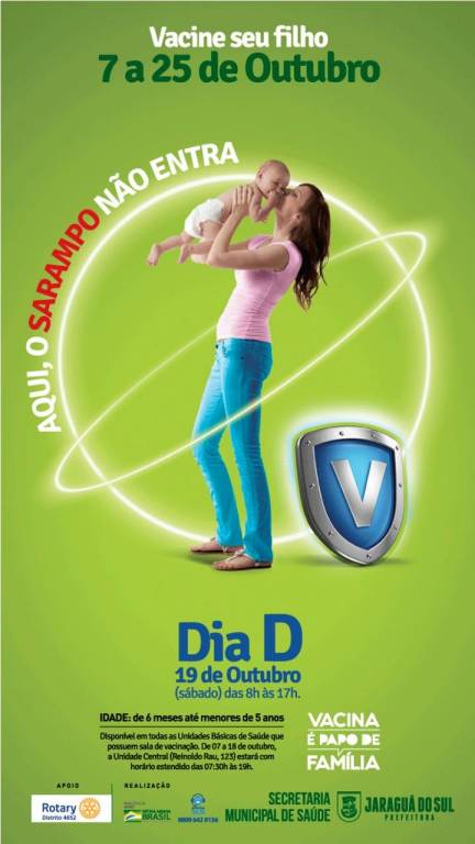 Neste sabado (19/10/2018) foi dia do Rotary Club de Jaraguá do Sul participar do Dia D de combate a Polio e Sarampo, no período das 8 horas até 13 horas, nossos companheiros estiveram no Supermercado Cooper da Rua Reinoldo Rau (Centro) e no Supermercado Cooper da Barra do Rio Cerro em Jaraguá do Sul, onde foram desenvolvidos atividades de orientação e entrega de flyer "Aqui , o Sarampo não entra" para o público. Informado ainda ä população de que os Postos de Saúde estavam atendendo até 17 horas. Informado ainda da importâcia da vacinação , bem como a vacinação da Pólio, assim como também o papel do Rotary.