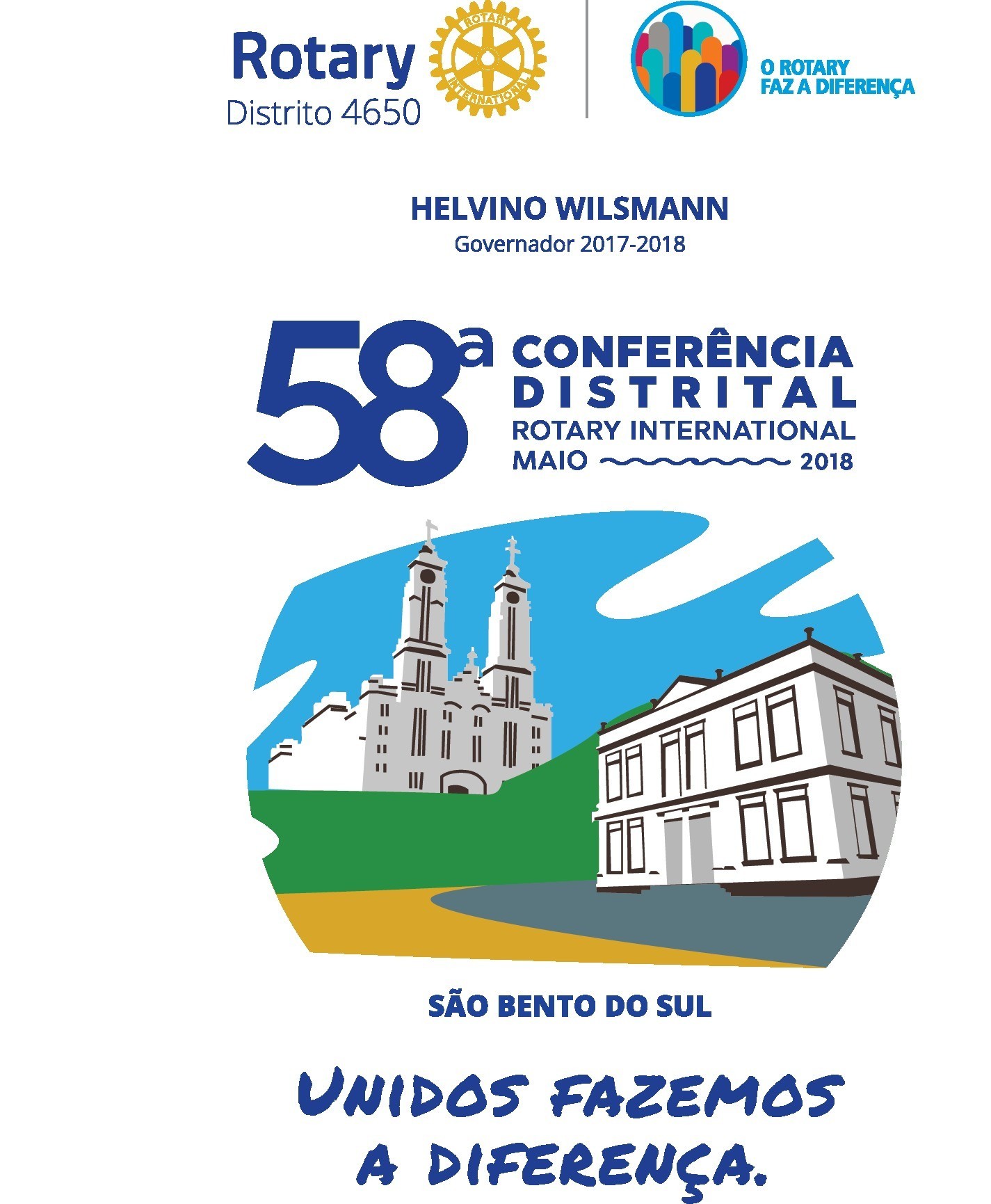 Com o tema: “Unidos Fazemos a Diferença”, o Distrito 4650 realiza entre os dias 18 e 20 de maio, o seu maior evento rotário da Gestão 2017-18. A cidade de São Bento do Sul receberá os Rotarianos, Rotaractianos, Interactianos, Kids, intercambistas e as integrantes da Casa da Amizade, durante a 58ª Conferência Distrital, Um dos pontos altos será a palestra: “Não sabendo que era impossível, ele foi lá e fez”, com Stephen Dubner. Toda programação de sábado será desenvolvida nas dependências da Sociedade Ginástica e Desportiva São Bento, na região central de São Bento.